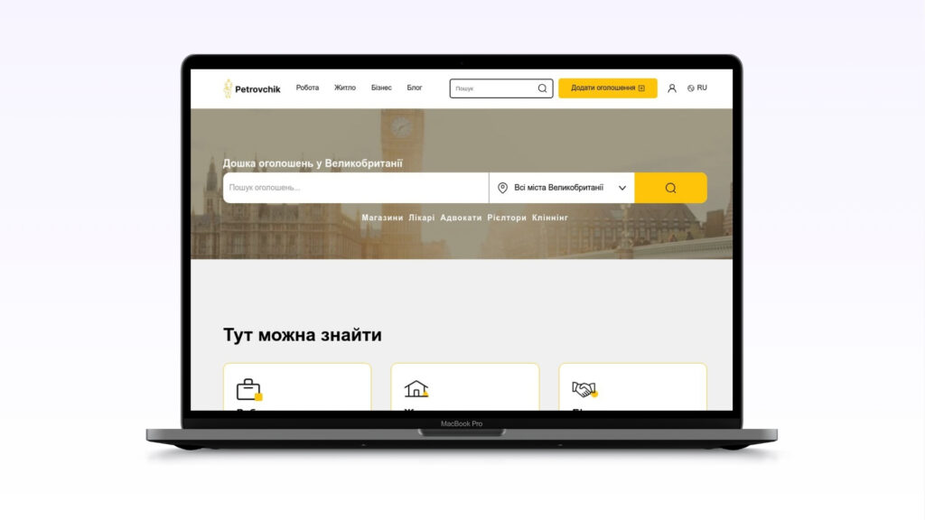 Дошка оголошень у Великій Британії, де користувачі можуть розміщувати та знаходити оголошення про різні послуги, роботу, оренду житла та інші пропозиції, орієнтовані на російськомовну спільноту у Великобританії.